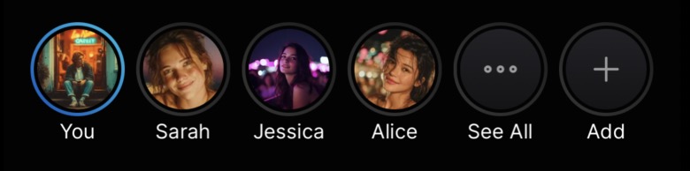 Switching between chats is instant. At the top of the screen, you'll see avatar bubbles: your home bubble and one for each romantic interest. Tap any bubble to jump to that person's chat. Tap home to go back.