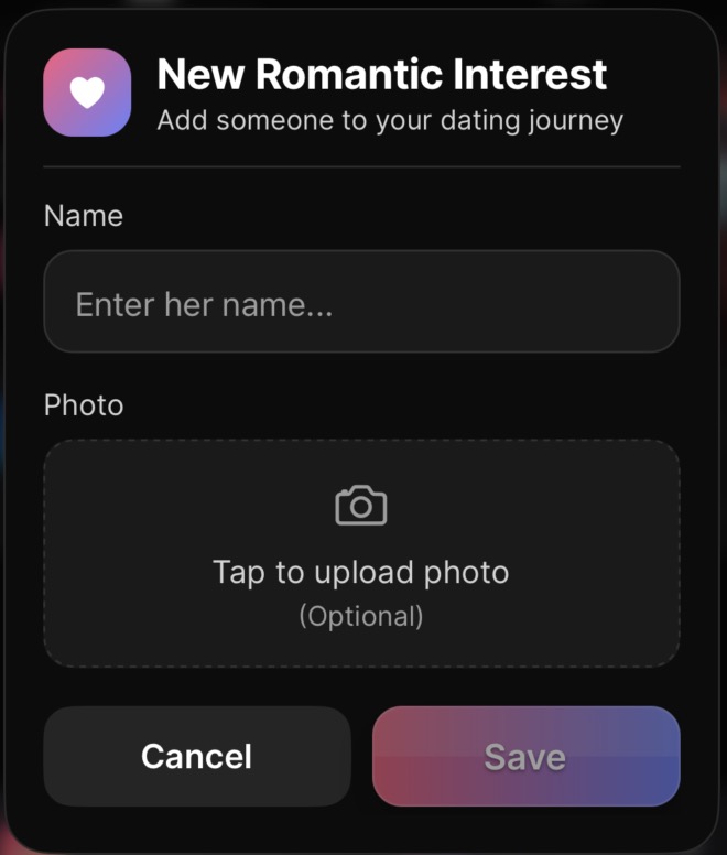 A romantic interest is anyone you're talking to, dating, or interested in. Adding them to Wingman unlocks the most powerful part of the app: contextual coaching that actually tracks your situation over time instead of giving you generic one-off advice.