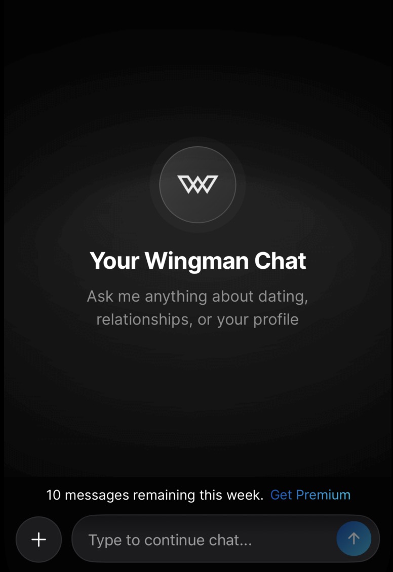 Whether you're in your home chat or a romantic interest's chat, the experience works the same way. Type a message and Wingman responds. But there's more to it than a basic chatbot.
